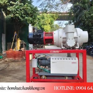 Bơm chân không trục vít ở bên dưới, bơm tăng áp lắp đặt bên trên