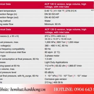 Thông số kỹ thuật của bơm chân không ACG 120G