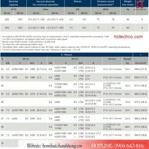 Bảng thông số kỹ thuật của máy bơm chân không Becker u5.300