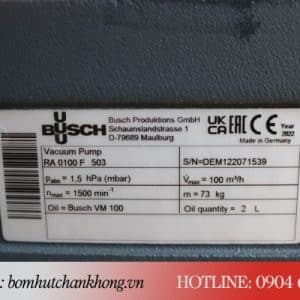 Thông số kỹ thuật của bơm chân không Busch trên tem máy bơm