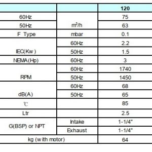 | Displacement | 100 m3/h |