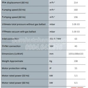 - Khả năng xử lý hơi cao nhất so với tất cả các dòng bơm chân không cánh gạt nào khác