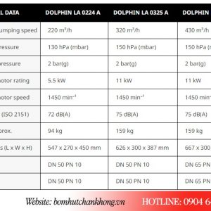 Thông số kỹ thuật của bơm chân không Busch LA 0325A